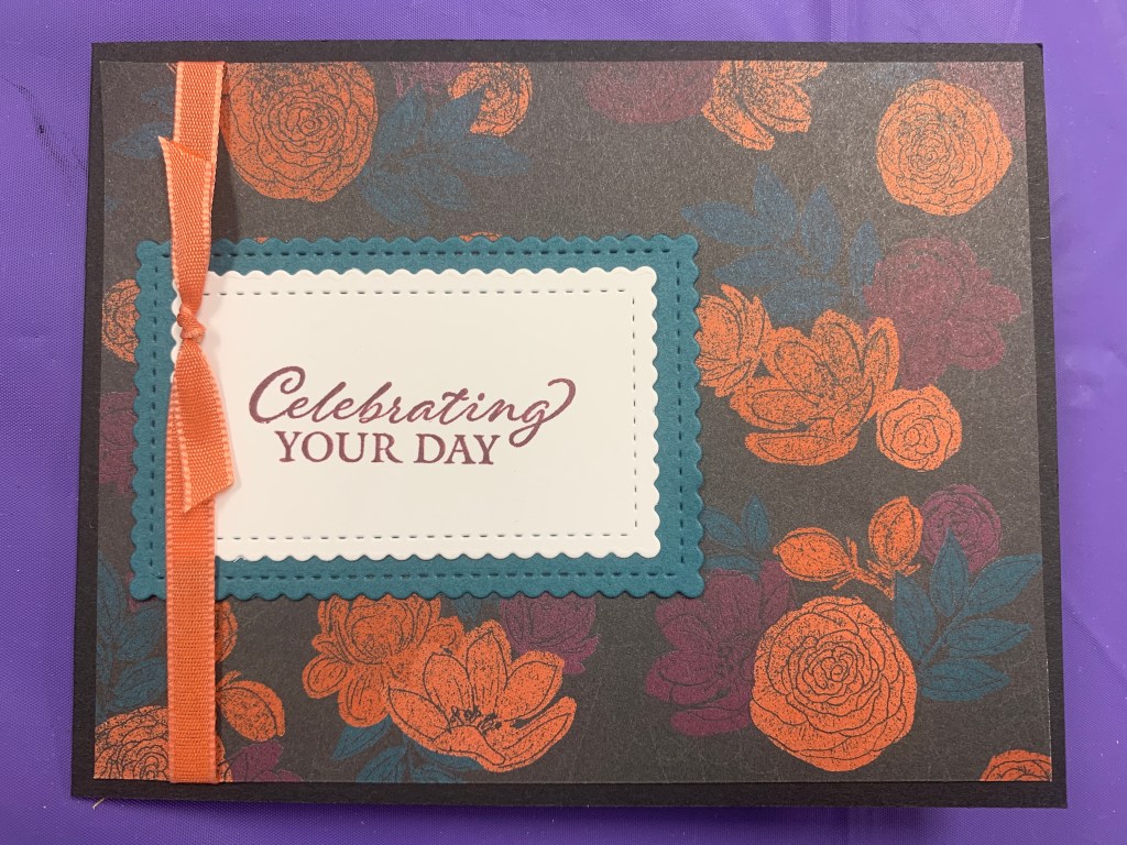 I finished the card with Happy Birthday from the Here’s A Hug (#149438). I created this card for my Monday Night Mystery Stamping group. They had the clues of what to cut before then and we met by Zoom to put the cards together. It is such a fun way to stay connected while staying apart.